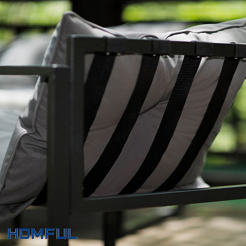 Sein UV-Schutz und seine Witterungsbeständigkeit, die sowohl hohen Sommertemperaturen als auch kalten Wintertemperaturen standhält, halten die Möbel lange haltbar. Da es mit weichen Kissen ausgestattet ist, können Sie beim Sitzen im Freien luxuriös entspannen. Dank des minimalistischen Stils, der sich in jede Umgebung integrieren lässt, wirkt Ihre Außenumgebung eleganter und schöner. Aufgrund der zuverlässigen Qualität und des günstigen Preises ist es die perfekte Option für Ihre Außendekoration.