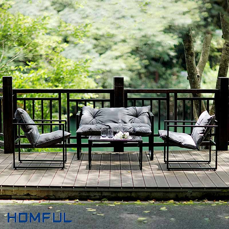 Vielseitig einsetzbar: geeignet für den Einsatz in Gärten, Innenhöfen und anderen Außenbereichen. Es ist langlebig, weist eine hervorragende Witterungsbeständigkeit auf, besteht aus Gusseisen und Aluminium und kann viele Jahre lang verwendet werden. Da es leicht ist und praktisch nicht rostet, ist Aluminium das perfekte Material. Zur Herstellung der Sitze werden auch Aluminium-Flachnudeln verwendet. Es verfügt über eine Zweiercouch und zwei Einzelsessel, die Platz für bis zu vier Personen bieten und den unterschiedlichen Ansprüchen der Familienmitglieder gerecht werden. Hochwertiger Stoff bedeckt die Oberfläche des Stuhls und macht ihn angenehm und langlebig, resistent gegen Schmutz und Bakterien und verhindert Farbveränderungen der Möbel durch Feuchtigkeit. Durch seine geradlinige und elegante Form eignet er sich perfekt für eine Vielzahl von Außenbereichen und unterstreicht die Schönheit und Größe Ihres Außenbereichs.