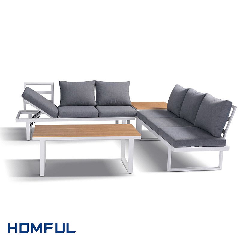 Mehrere Kombinationen: Es wurde speziell für Außenbereiche entwickelt, und seine zahlreichen freien Kombinationen ermöglichen es Ihnen, perfekte Außenbereiche nach Ihren Wünschen zu gestalten. Das verstellbare Sofa-Set aus Aluminium für den Außenbereich erfüllt Ihre vielfältigen Bedürfnisse und ermöglicht es Ihnen, eine komfortable Umgebung im Freien zu genießen.