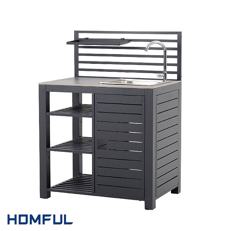 Outdoor kitchen sink cabinet: Sink unit with tap makes rinsing vegetables, washing dishes and washing hands easier. Just connect your garden hose to your outdoor kitchen faucet