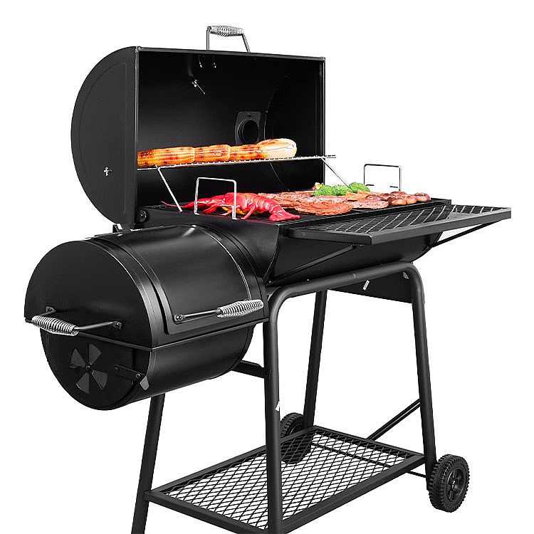 Parrilla de carbón con ahumador desplazado