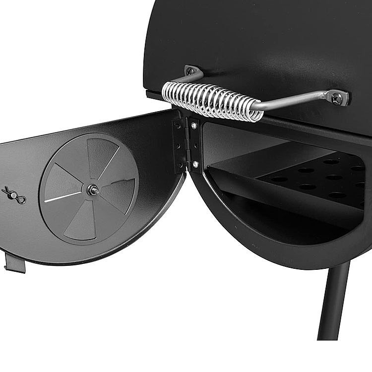 Con una combinación de ahumadores desplazados, esta parrilla de carbón ofrece un rendimiento excelente. Experimente la carne a la parrilla y ahumada al mismo tiempo sin problemas.