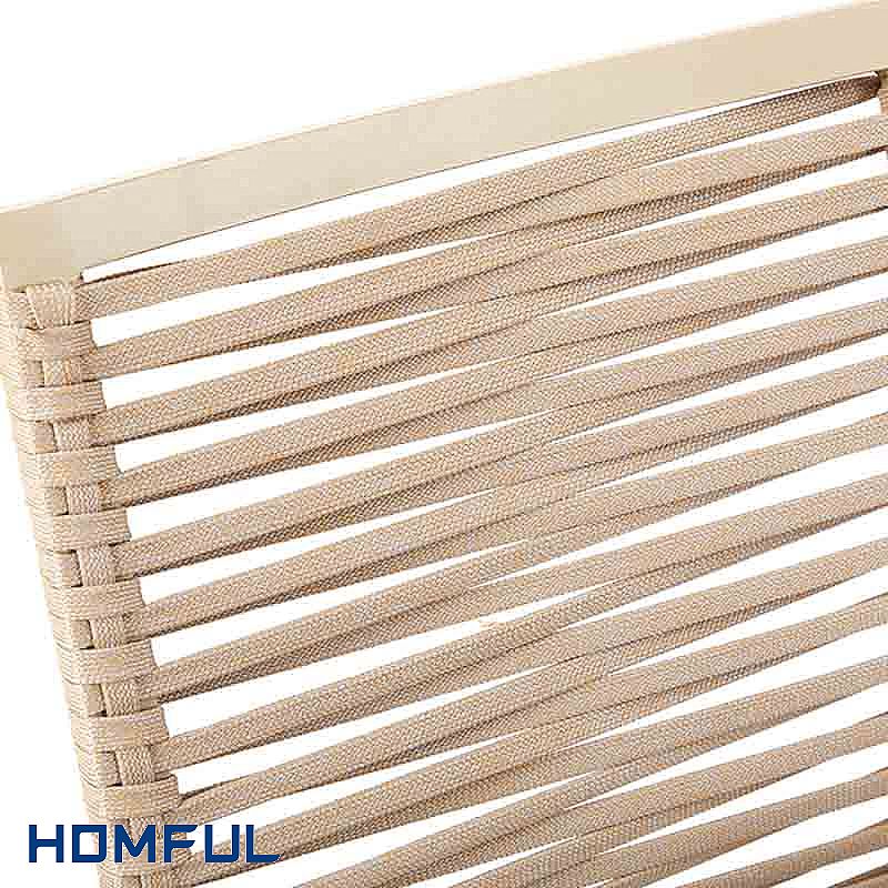 Rinse the aluminum frame with mild soap and water; avoid abrasive pads and harsh chemicals. For the rope, brush off dust and rinse periodically—especially in coastal areas. Keep cushions dry and covered in prolonged wet weather to extend life.
