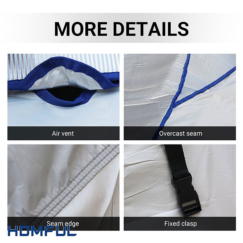 우리의 자동차 커버는 또한 추가 강도와 내구성을 제공하는 흐린 솔기와 솔기 가장자리를 특징으로 합니다. 고정 걸쇠는 강풍이나 폭설이 내리는 경우에도 덮개가 제자리에 단단히 고정되도록 합니다. 즉, 기상 조건에 관계없이 차량이 항상 보호 상태를 유지합니다.