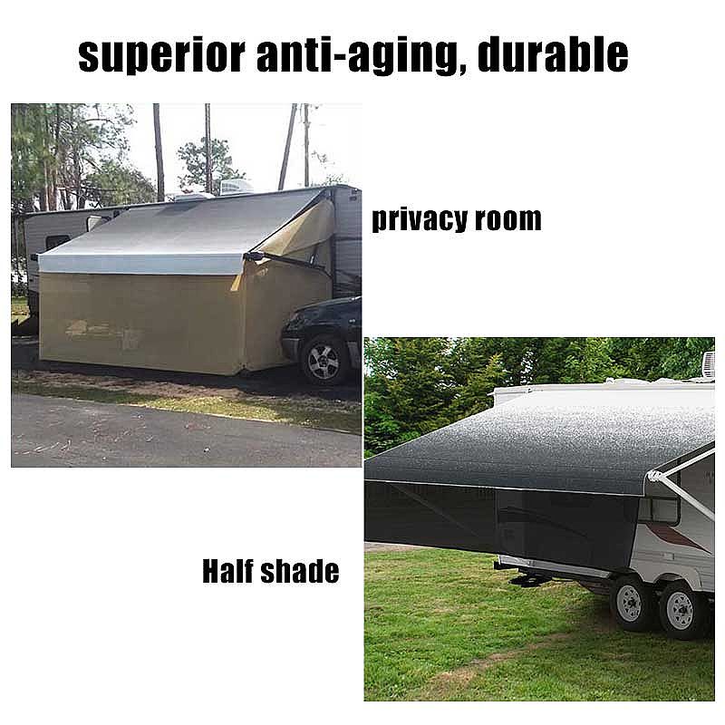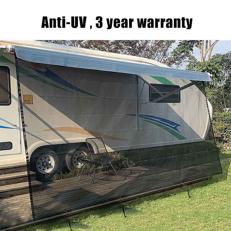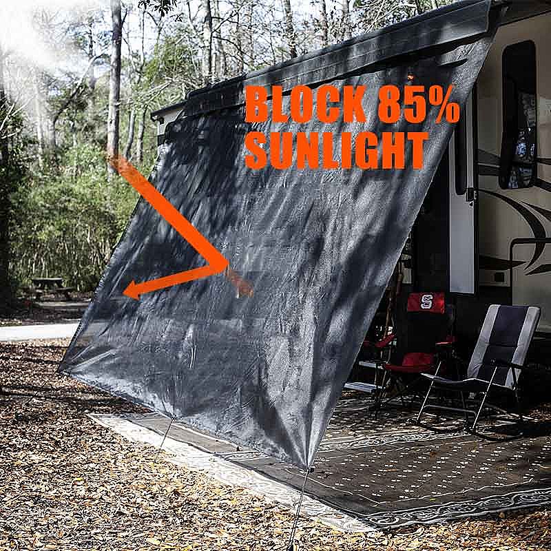 You should get one RV awning shade. It provides ample shade and a place to relax when camping, so you get more shade. The HDPE material is visible and breathable, so you can see the front landscape and check who is close to your secret place. The awning shade blocks 86-90% sunshine, keeping your outdoor garden cool. The wind can come through the mesh material, and a little sunshine goes through the shade. It makes garden time more pleasant.