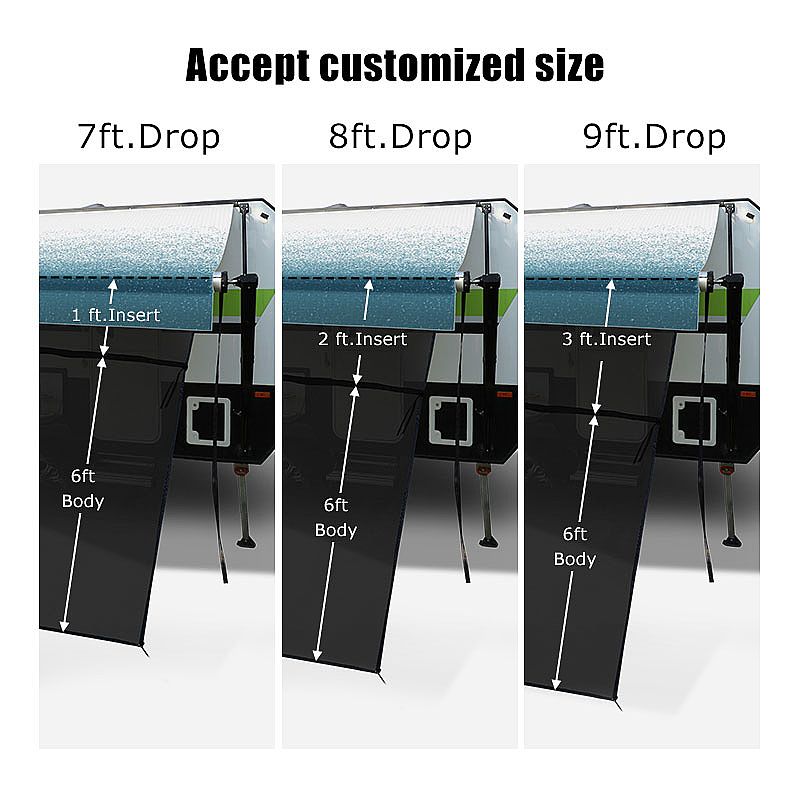We have two designs for caravan awning shades: one in front and the other inside. You can install them where you want.