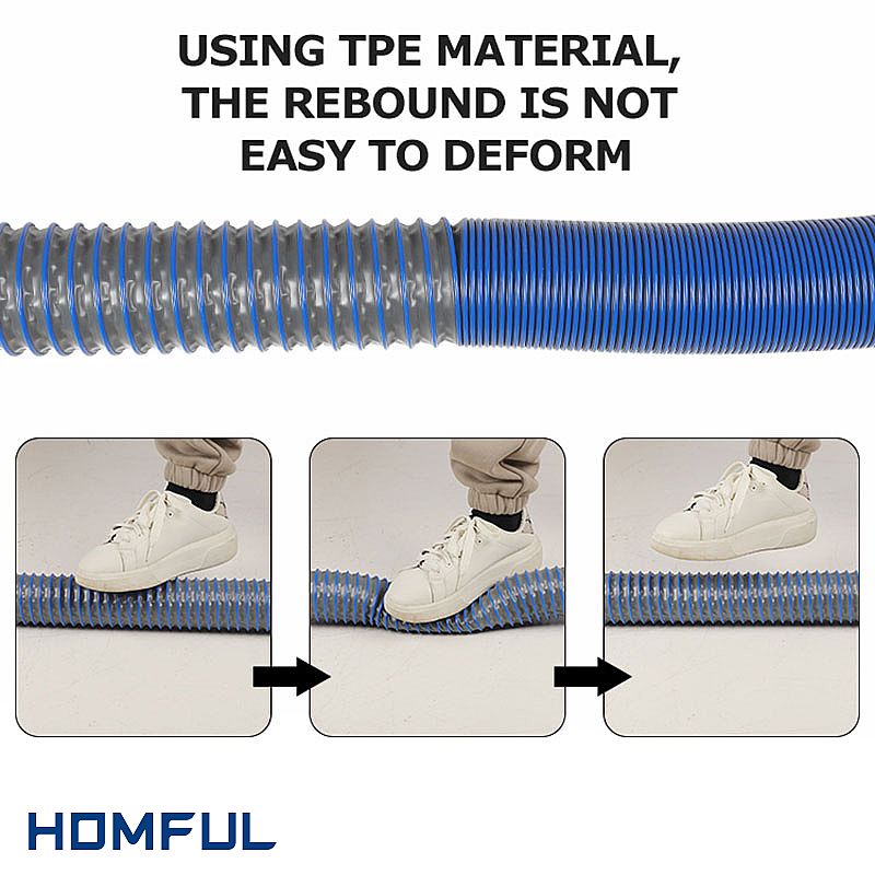 Esta es la manguera de alcantarillado utilizada en el RV y el remolque. Está hecho de PET. Este es un material con buenas propiedades mecánicas y resistencia al plegado, con aceite, grasa, ácido, álcali diluido y resistencia a la mayoría de los solventes. Esto es muy adecuado para viajar y acampar; podemos disponer de los residuos de alimentos y limpiar las aguas residuales a través de ella; esto es a la vez conveniente y sanitario, propicio para la protección del medio ambiente. Y tiene una excelente resistencia a altas temperaturas y un rendimiento a bajas temperaturas. Buen sellado, sin fugas. Este es un material duradero; puede tener total confianza en su calidad. La flexibilidad también es una característica de este material, lo que permite que la tubería se doble a voluntad con facilidad. Y está reforzado con alambre de acero, protegiendo eficientemente la superficie de la manguera de alcantarillado.