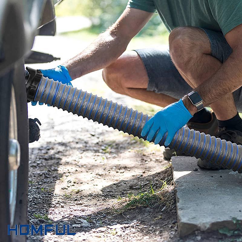 La manguera de alcantarillado de 10FT/20FT está conectada de forma segura a la salida de alcantarillado de su RV o remolque y luego se extiende desde su RV hasta el sitio de descarga. El alambre mantiene la manguera intacta y protege la superficie de objetos afilados. Los adaptadores son adecuados para cualquier conexión de alcantarillado para garantizar la seguridad de la manguera y no requieren levantar objetos pesados para asegurarlos. Después de haber limpiado el tanque y enjuagado, simplemente doble la manguera, asegure la tapa del extremo para evitar el goteo y guárdela en el parachoques. El material de esta manguera de alcantarillado es flexible, por lo que la manguera de alcantarillado se puede extender durante mucho tiempo. Es fácil de almacenar por lo que no ocupará demasiado espacio.