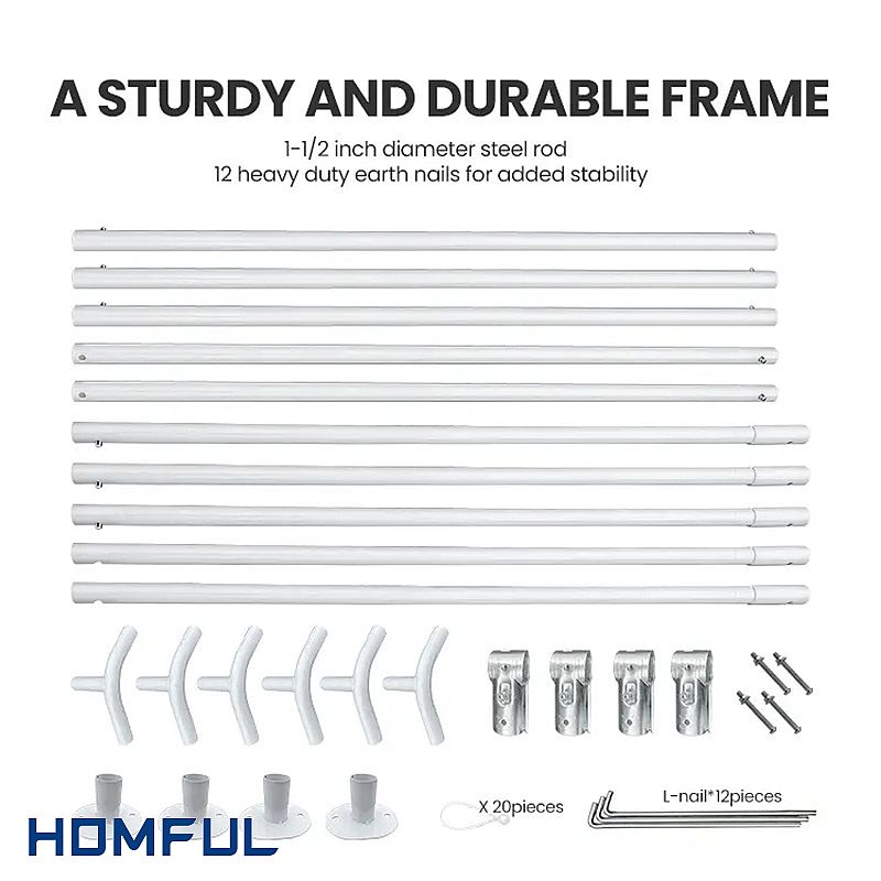 Einfacher Aufbau: Dank des werkzeuglosen Rahmens ist der Aufbau sehr schnell und einfach. Die Verbindungen zwischen den Stahlrohren sind einfach. Die Montage der Abdeckung ist einfach, da sie aus einem Stück besteht.