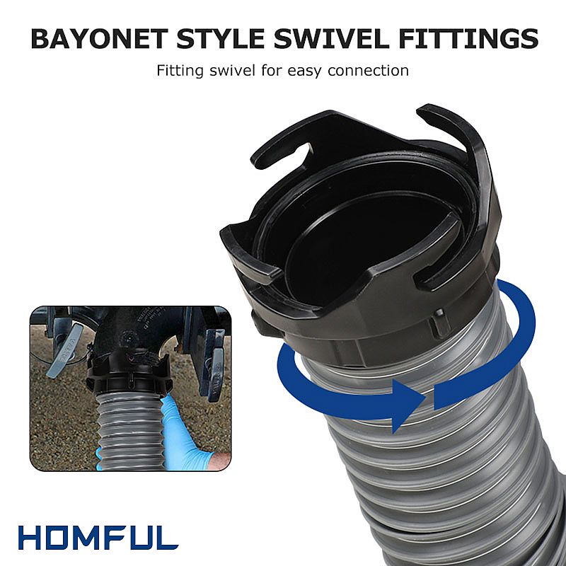 A good RV sewer hose earns its value in the least glamorous but most necessary part of the journey: waste handling. That is where this PP RV sewer hose has strong selling logic. The hose is presented as a complete wastewater solution for RVs and trailers, with included connection components such as a swivel bayonet adapter, elbow adapter, and lids, plus fit for a variety of dump station pipes. That matters because buyers are not only looking for a hose—they are looking for a setup that makes connection quicker, drainage smoother, and cleanup less troublesome.