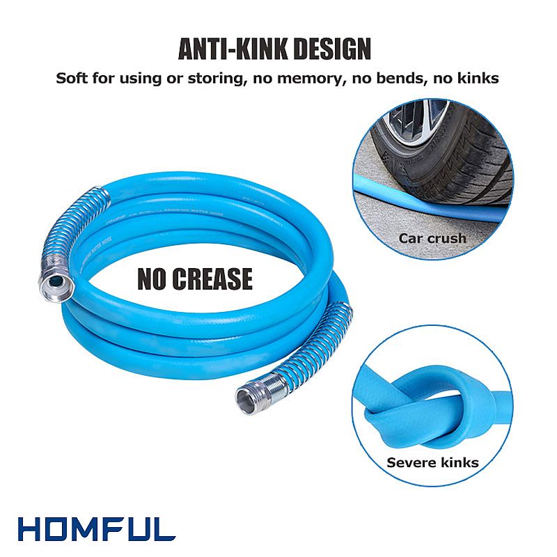 The RV water hose is made from non-toxic materials that are safe for drinking water. This means you can fill your RV's water tank or use the hose to connect directly to your RV's plumbing system without worrying about harmful chemicals or contaminants. The hose is also designed to prevent kinking, which can lead to damage and leaks.