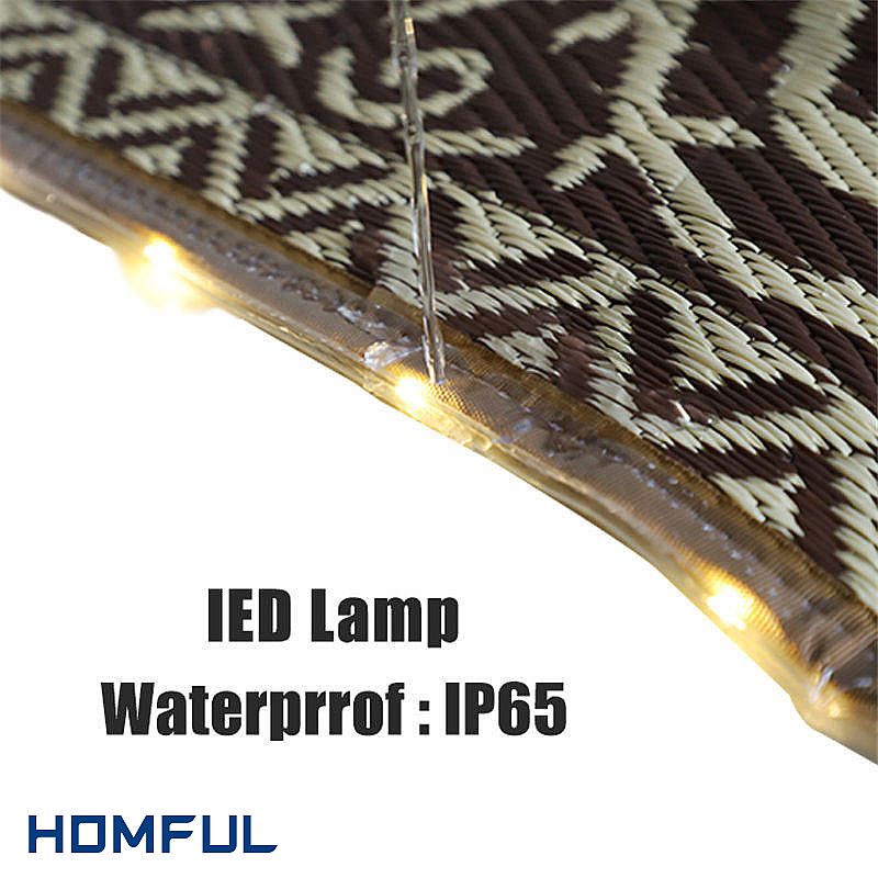 * Es schützt Ihre Familie, Möbel vor schmutzigem, nassem Boden. Sparen Sie Zeit, um den schmutzigen Stuhl oder Tisch zu reinigen. Schließen Sie es an eine Steckdose an und beleuchten Sie Ihre Terrasse mit der LED-Randbeleuchtung, die Ihre Outdoor-Teppiche zu besonderen, romantischen Outdoor-Teppichen machen kann. Beleuchten Sie Ihren Garten, beleuchten Sie Ihr Leben.
