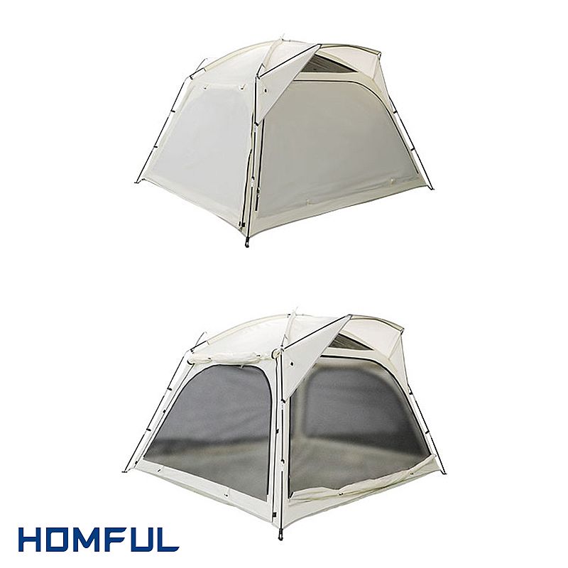 Das Design dieses Polyesterzeltes ist sehr neuartig. Das Gesamtgefühl des Zeltes ist sehr leicht und atmungsaktiv. Alle vier Seiten des Zeltes bestehen aus großflächigem Mesh und Polyestergewebe. Nur der Netzteil kommt heraus, wenn Sie den ganzen Stoff abziehen. Dies kann eine sehr gute Belüftungsfunktion übernehmen. Auch wenn Sie im Zelt sitzen, haben Sie eine sehr weite Sicht. Im Sommer sind lästige Mücken und Käfer sehr aktiv. Das atmungsaktive Mesh hält Mücken fern. Kleine Insekten bohren sich nicht so leicht in das Zelt, wenn das Netz vollständig geschlossen ist. Sie können einen bequemen Platz in einem Zelt bekommen.