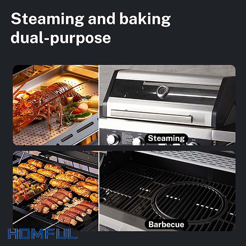 4. Große Kochfläche: Mit einer Größe von 123 x 53 x 112 cm und einem Gewicht von 37 kg reicht er aus, um mehrere Gerichte gleichzeitig zuzubereiten, was ihn sehr gut für Familienfeiern und Partys im Freien geeignet macht.