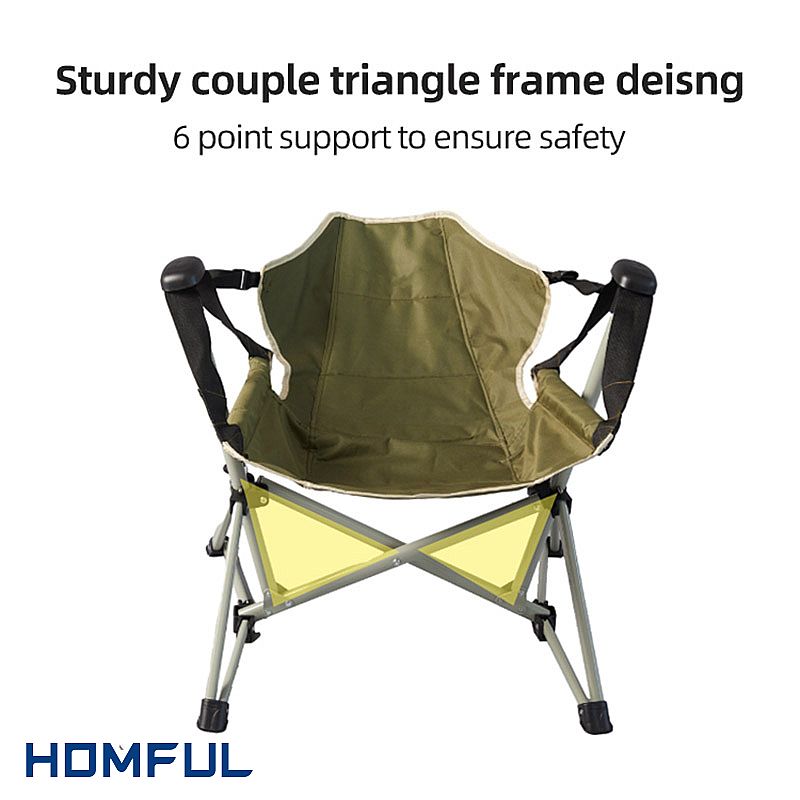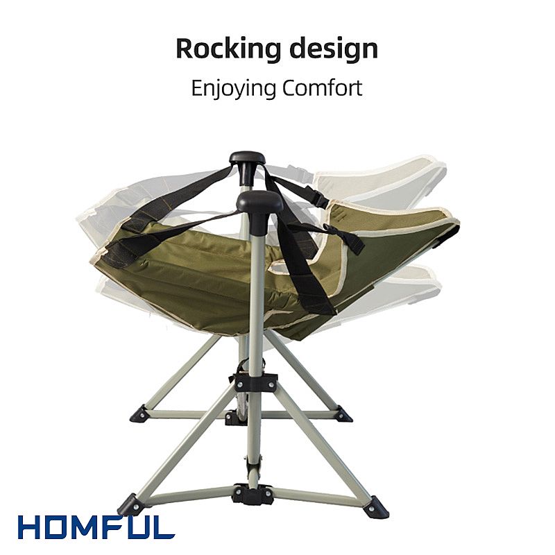 Sein Schaukel-Design sorgt dafür, dass Kinder bequem auf dem Stuhl sitzen können. Um die Sicherheit der Kinder zu gewährleisten, verfügt der Schaukelstuhl über ein stabiles Dreiecksrahmen-Design mit 6-Punkt-Stütze und einer Sicherheitsverriegelung am Verbindungsstück des Stahlrahmens. Die Fußstütze ist außerdem rutschfest. Zur Einstellung der Sitzhöhe verfügt der Stuhl über verstellbare Schnallen für verschiedene Körpergrößen von Kindern. Darüber hinaus lässt sich der Stahlrahmen des Schaukelstuhls zum einfachen Transport zusammenklappen und mit dem Stoff zusammenbauen. Außerdem verfügt er über eine Außentasche zur bequemen Aufbewahrung.