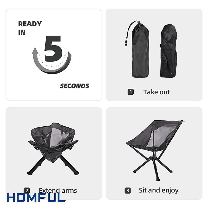 Insgesamt ist der Quick Open Moon Chair der Homful Group perfekt, um überall eingesetzt zu werden: Er ist nicht nur perfekt für Ihren Rasen - diese Outdoor-Stühle eignen sich auch für Grillabende, Picknicks, Strandtage, Rucksackreisen, Musikfestivals und Konzerte. Super bequemer Stuhl mit größerem Sitz und stabilerer Struktur. Er verfügt über eine hochfeste Skelettstruktur aus Aluminiumlegierung mit 600D-Polyestergewebe, um Ihr Gewicht gleichmäßig zu verteilen und Ihre Freizeit angenehmer zu gestalten.